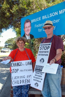 Share Facebook Twitter LinkedIn Email Reddit Threads Copy Link Detention Protest outside Bruce billson’s office. L-R Alice Opper and Kevin Bain.